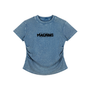 Fitted vintage-washed cotton tee featuring a tonal black “MACHINE” graphic across the chest. The distressed surface and softened edges create depth within the lettering, allowing the mark to feel embedded rather than applied. Subdued contrast. Textured presence. Controlled attitude.